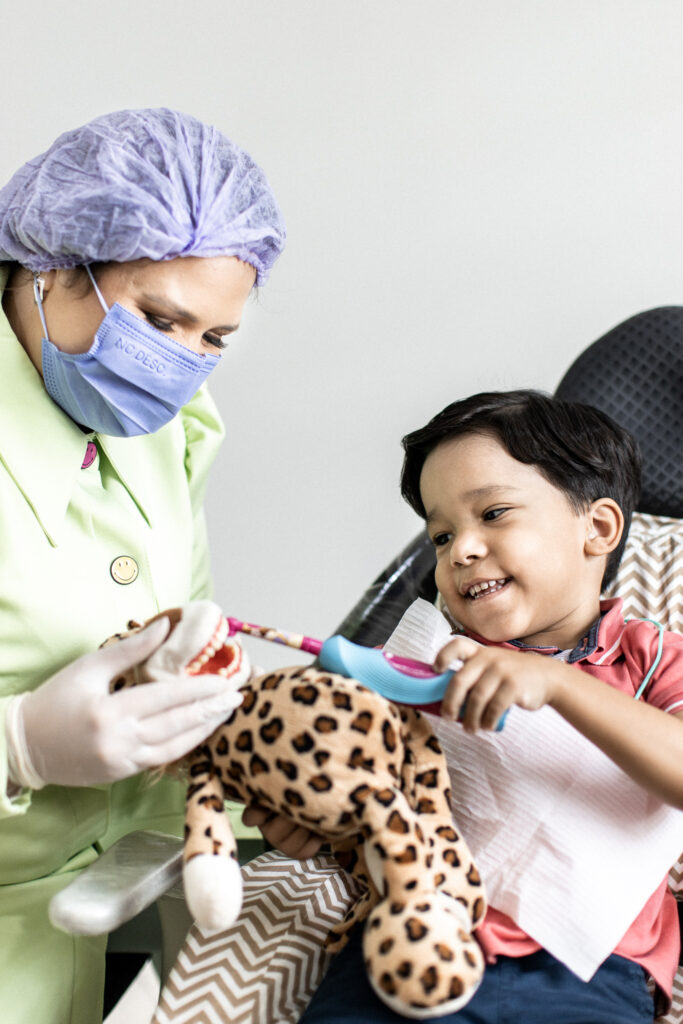 Somos espelhos para as crianças, então o primeiro ponto é: você deve sempre servir de exemplo e mostrar pra sua criança como você cuida dos seus dentes ou fatos que aconteceram porque houve um tempo que você não entendia que precisava ter uma rotina de saúde bucal (por exemplo, a vovó pode ter perdido os dentes por que o bichinho da cárie fez um buraquinho tão grande no dente que ela precisou tirar, e não nasceu um dente novo no lugar). Esses momentos de incentivo, cuidado e conversa podem servir de estímulo para a criança querer cuidar do sorriso… use a abuse de tudo que é lúdico e pode trazer prazer para a criança: músicas, histórias, jogos… vou tentar te ajudar aqui no blog com conteúdos úteis, fique de olho.